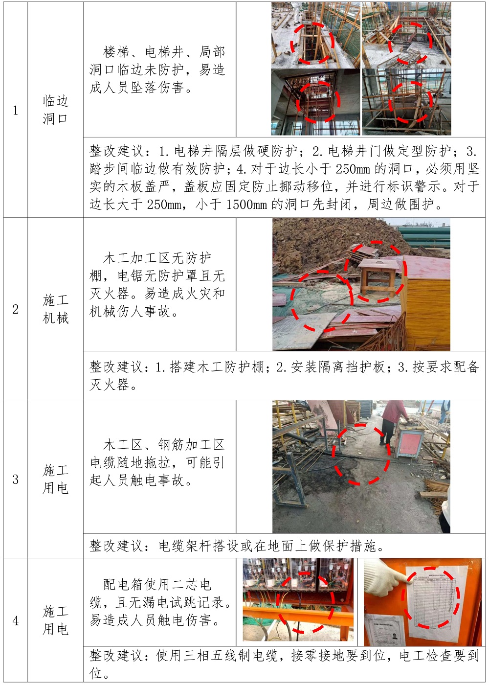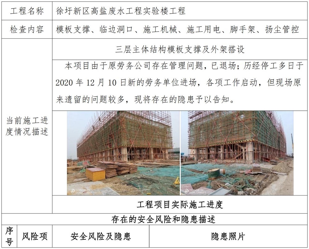 二、在建项目安全隐患描述