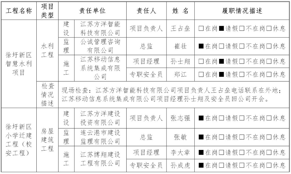 一、 三方安全责任主体主要管理人员在岗情况检查