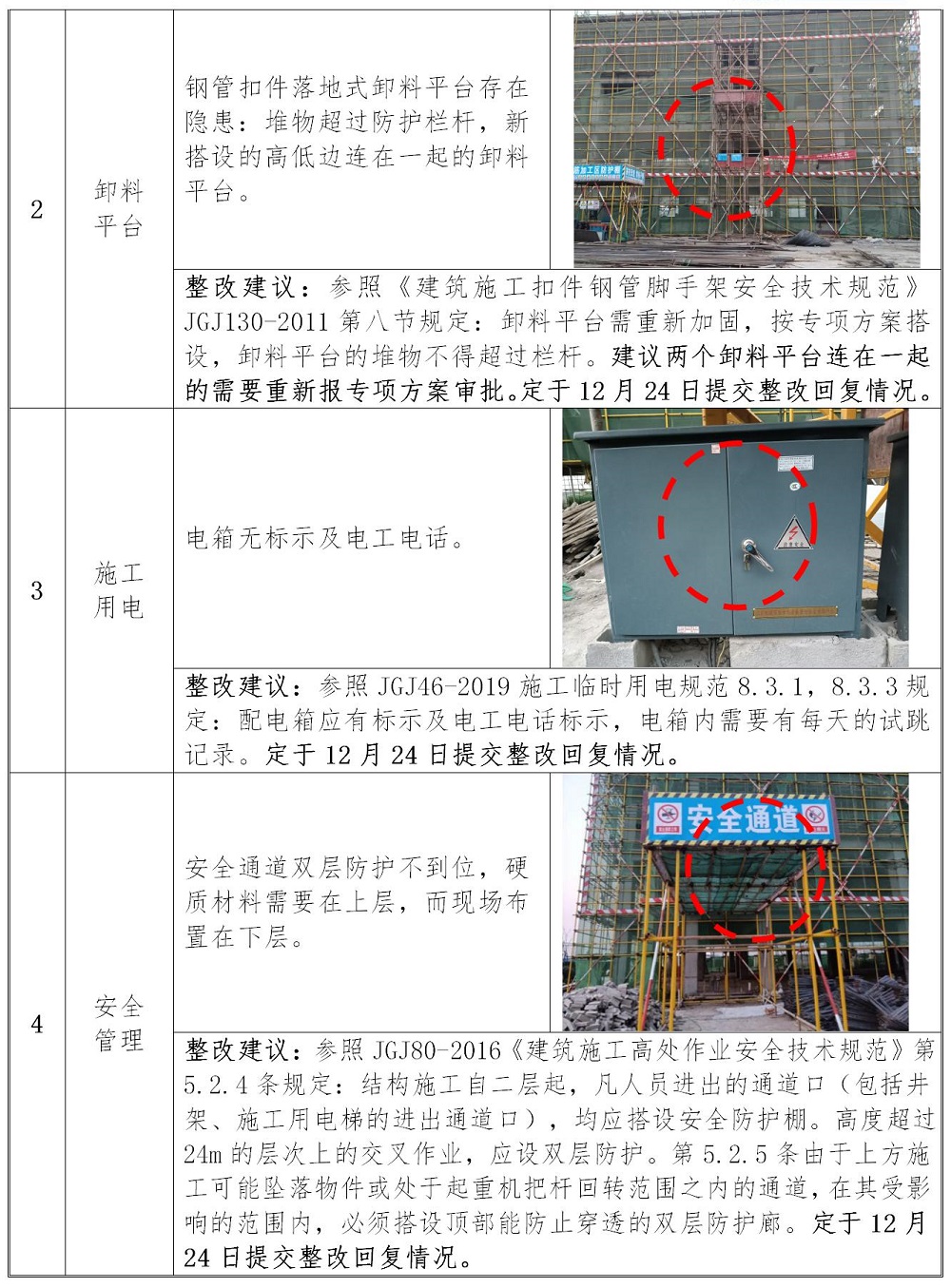 项目组重点对施工现场的三方安全责任主体主要管理人员在岗情况、施工企业现场日常安全管理,以及结合被检工程的特点对涉及的危大工程、施工机械设备、临时用电、临边洞口防护、冬季消防安全、生活区安全管理等方面进行有针对性的安全检查。