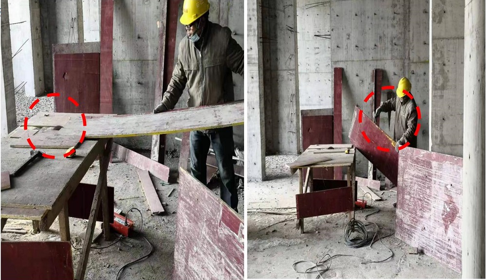 现场要求:检查机具(盘锯)安全性,做好临时用电、临边洞口安全防护。