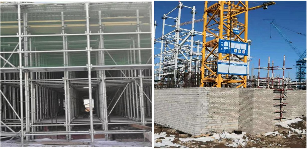 现场亮点二:使用盘扣式脚手架;塔式起重机公告牌规范化。