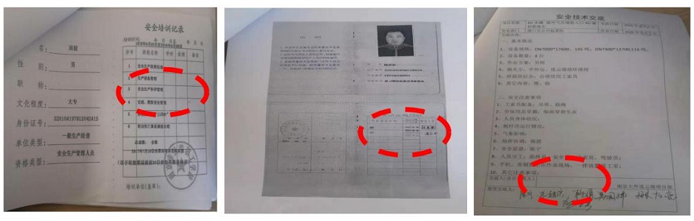 项目组主要检查了二港池129泊位项目的安全生产责任制、安全生产管理人员和特种作业人员持证上岗情况、三级安全教育培训、外包单位资质、班前安全技术交底等相应的安全管理资料。通过检查,项目组发现该项目的安全资料存在以下问题: