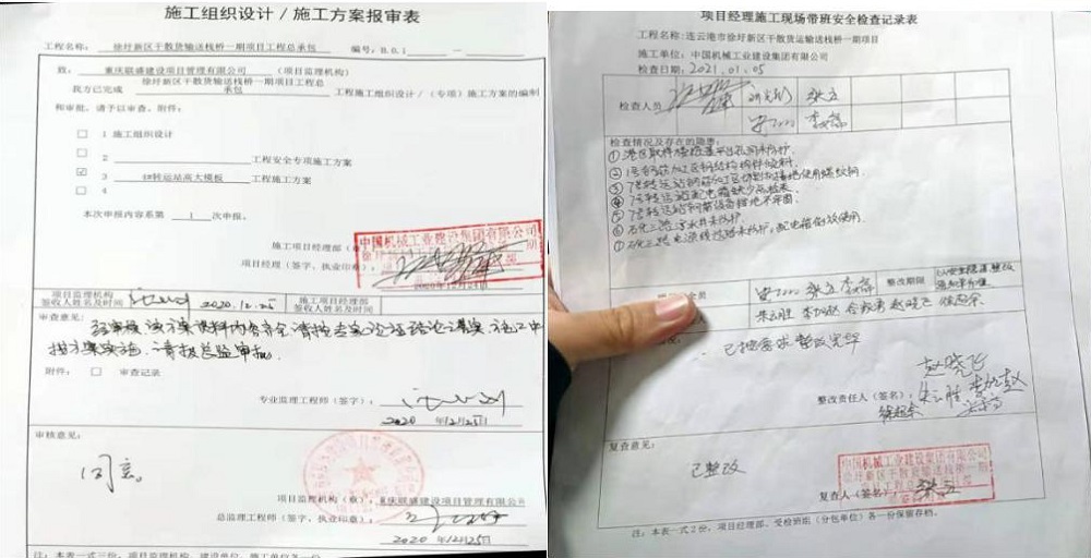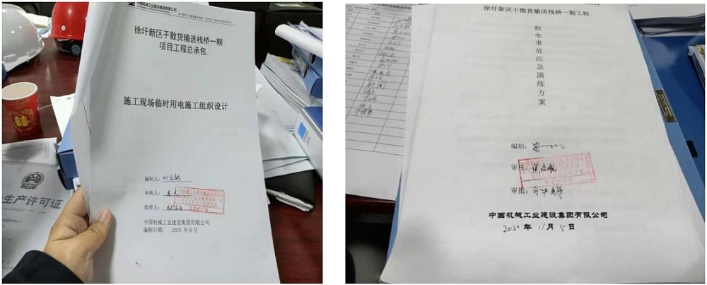 因石化基地防疫要求,且项目组人员信息未在石化基地备案,故无法进入在基地内的栈桥一期工程现场。项目组在该项目部会议室通过查看相关记录和资料、询问、沟通交流等方式,查看了各方的安全管理资料、隐患排查治理、安全教育培训、施工方案审批、安全技术交底、特种作业人员等相关内业资料,指出了检查中发现的问题并提出整改建议和要求。