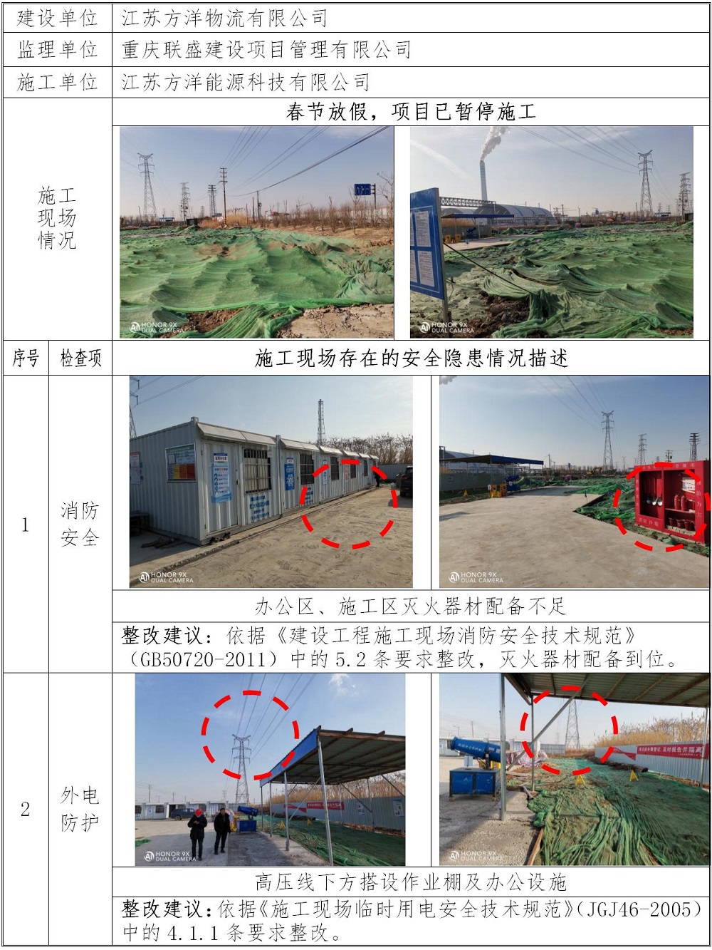 1.施工现场情况:春节放假,项目已暂停施工,大门上锁,无人员值守。