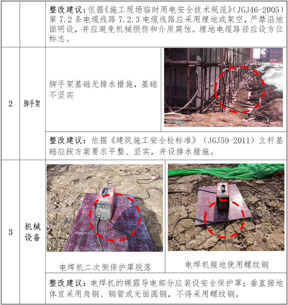 (3)徐圩污水处理厂升级改造工程:水池脚手架基础积水较多;临时用电。