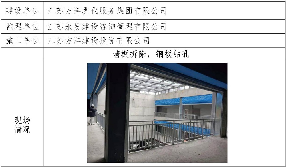 根据集团安环部工作安排,2021年2月25日,项目组对江苏方洋现代服务集团有限公司的安全管理工作进行了沟通交流,并对金融新天地B座室内装修工程施工现场进行检查。