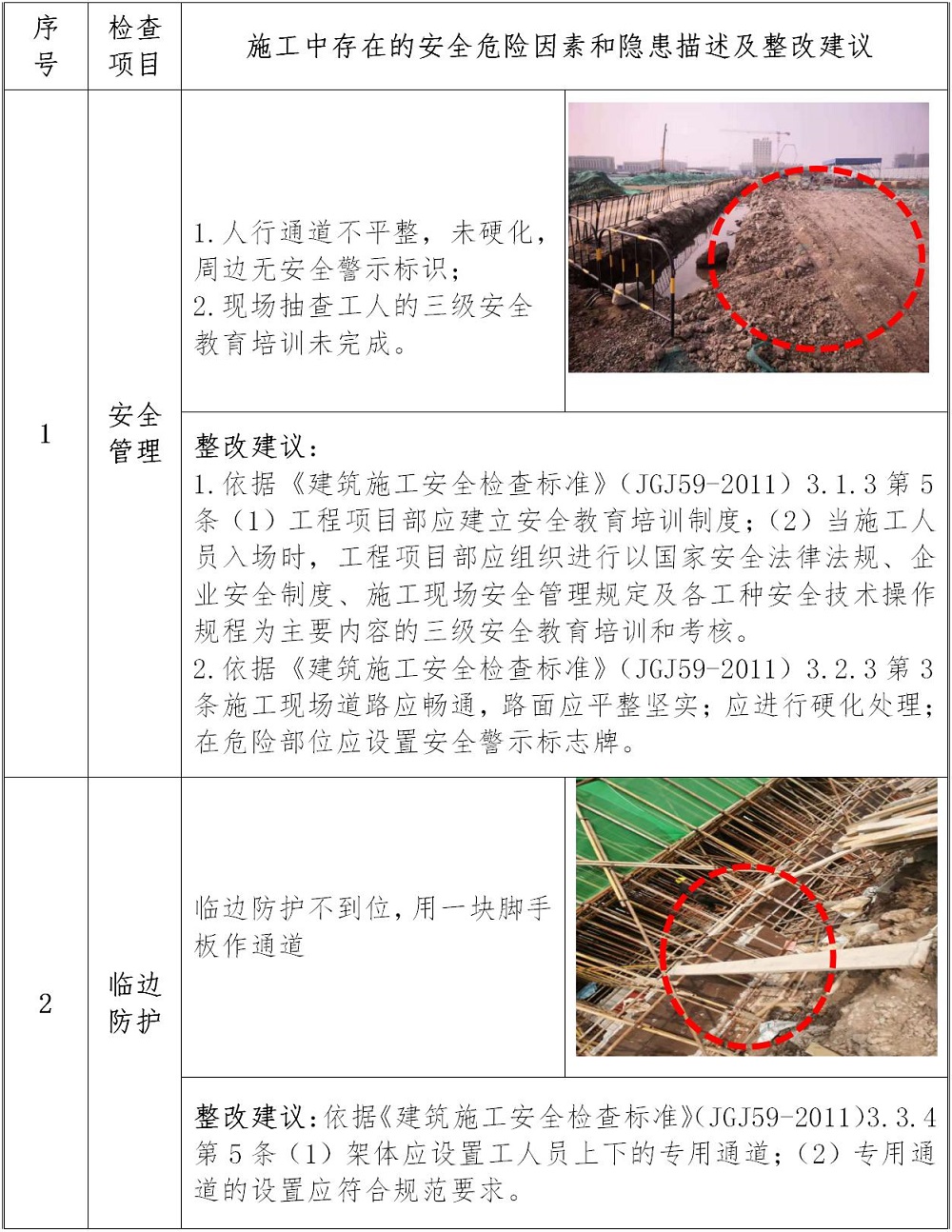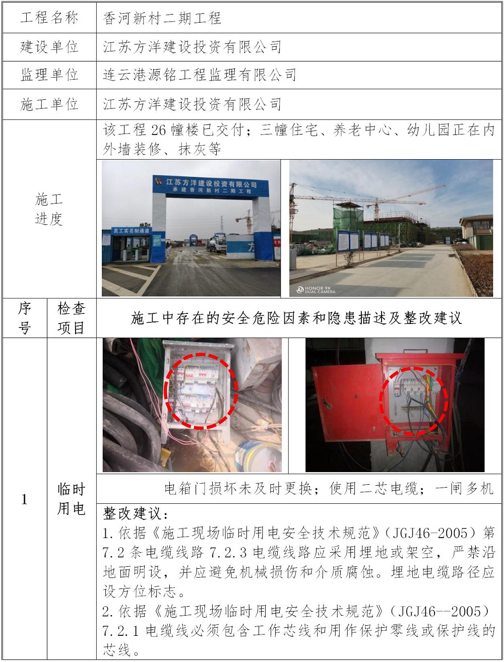 1.3月2日检查徐圩新区香河新村二期(棚户区改造一期)工程存在的安全隐患,经复查下列隐患未整改: