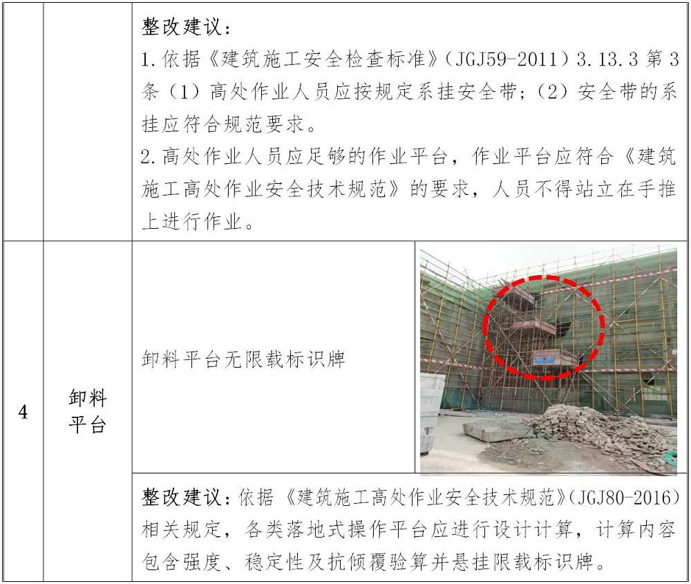 (3)高处作业:高处作业人员不系安全;高处作业违规使用单脚手板。