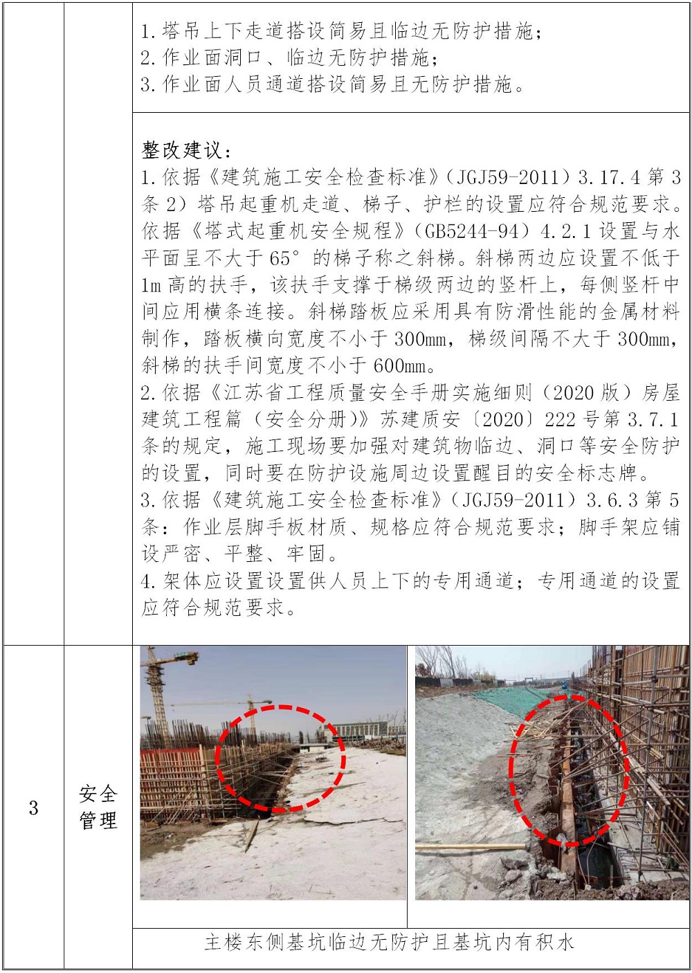 (2)高处作业:脚手架施工区域没有单独设置人行通道;作业区内的人行通道用一根木枋代替,部分临边防护缺失;临边防护的作业未与施工作业同时;塔吊的上下水平通道防护不到位。