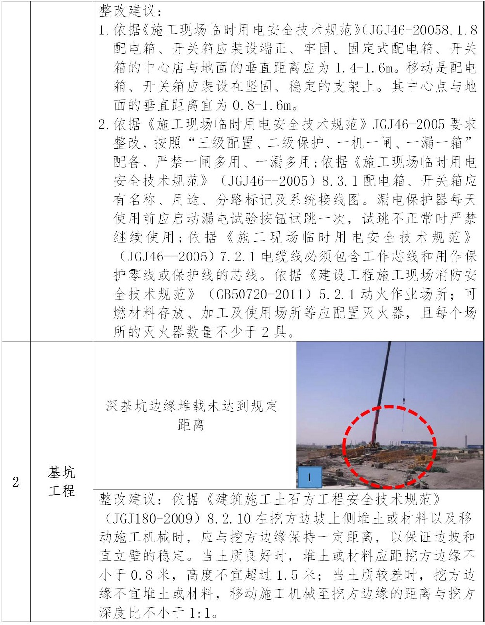 (1)安全管理方面:基坑边堆载,汽车吊在吊物。
