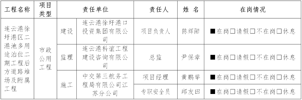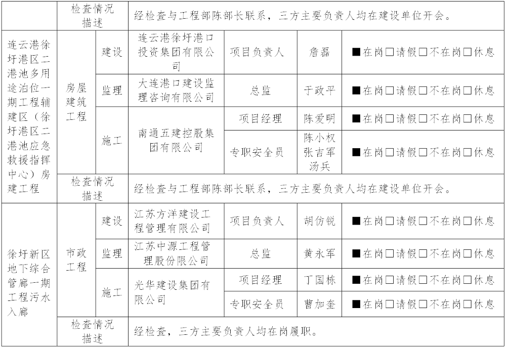 一、三方安全责任主体主要管理人员在岗情况