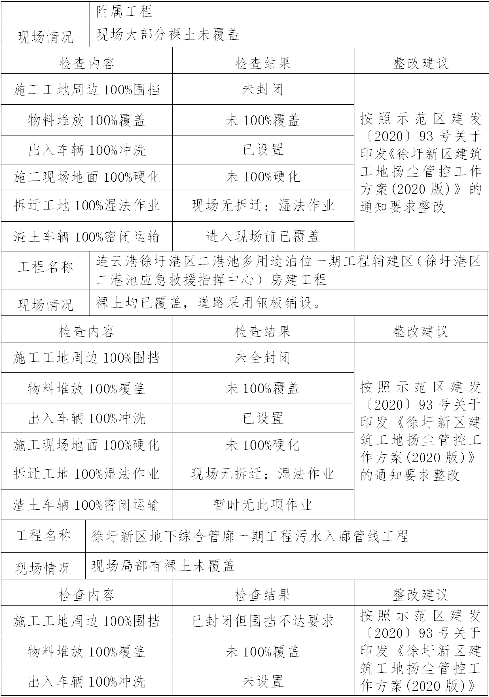 三、在建项目扬尘治理情况