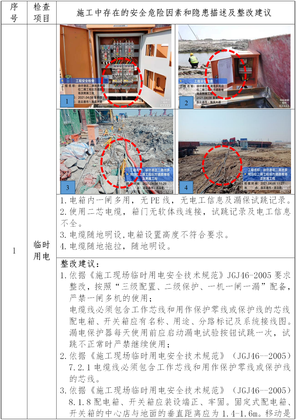 (2)按《施工现场临时用电安全技术规范》(JGJ46-2005)进行整改各线路的布设及电箱配置。