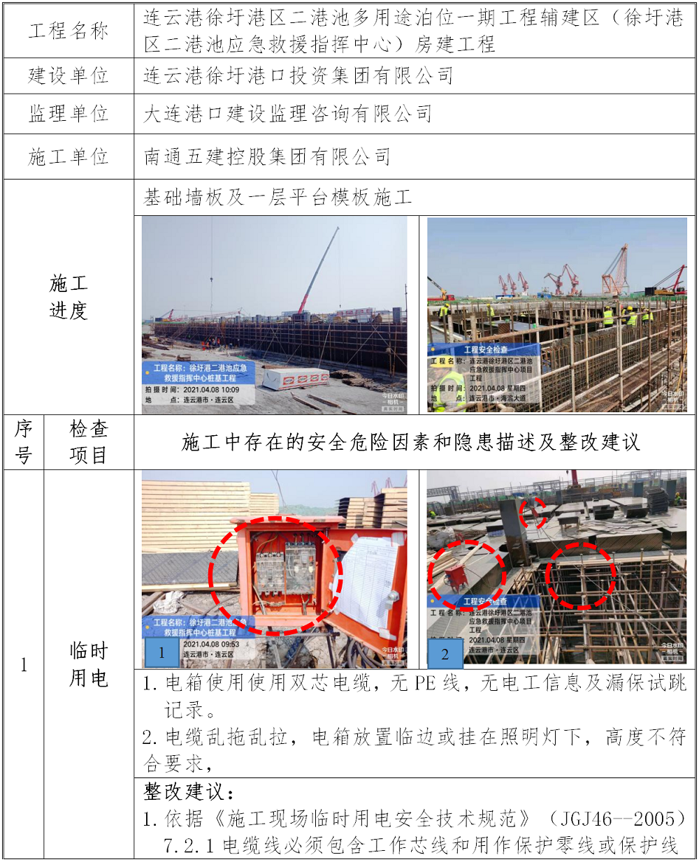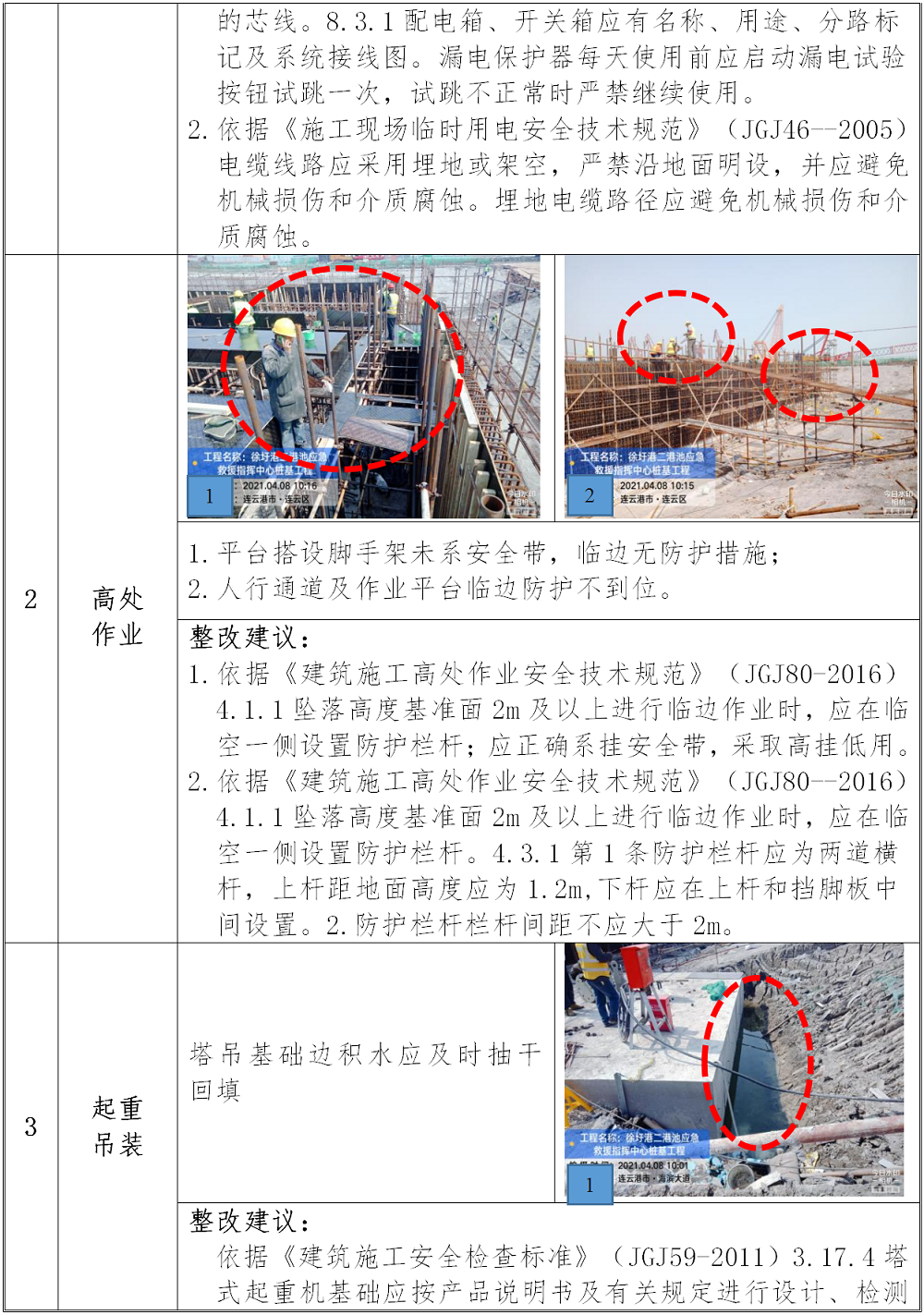 2.连云港徐圩港区二港池多用途泊位一期工程辅建区(徐圩港区二港池应急救援指挥中心)房建工程:高处作业、临时用电