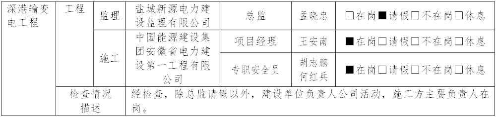 本工程三方主要负责人:总监请假,建设单位项目负责人在公司,施工单位主要负责人及安全员均在岗履职,本次主要是对3月28日检查的一个复查,施工单位已进行了整改,但是有部分还未整改到位,比如临时用电方面、搅拌机电箱设置、电动车充电等。