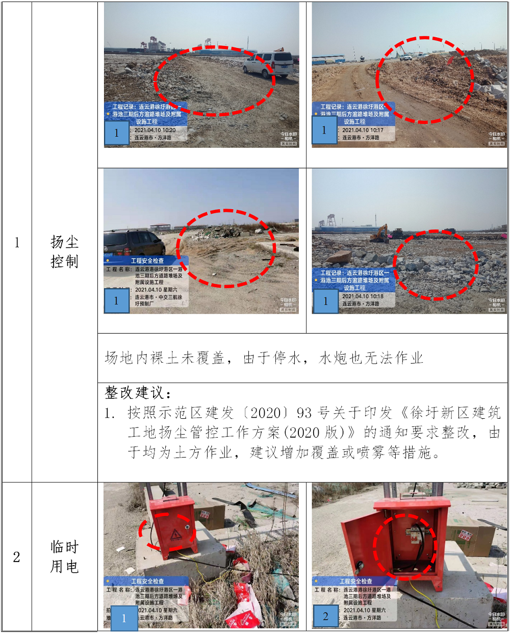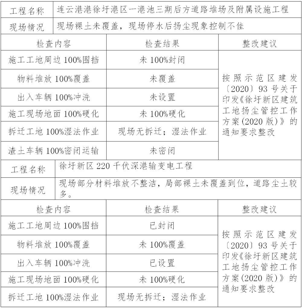 (1)按照示范区建发〔2020〕93号关于印发《徐圩新区建筑工地扬尘管控工作方案(2020版)》的通知要求整改。