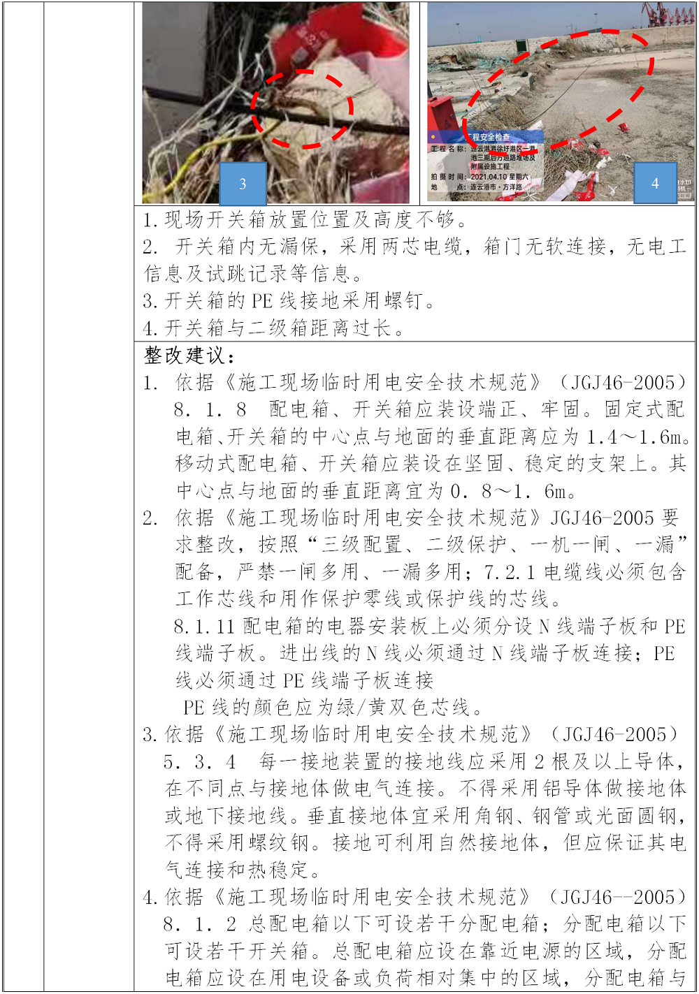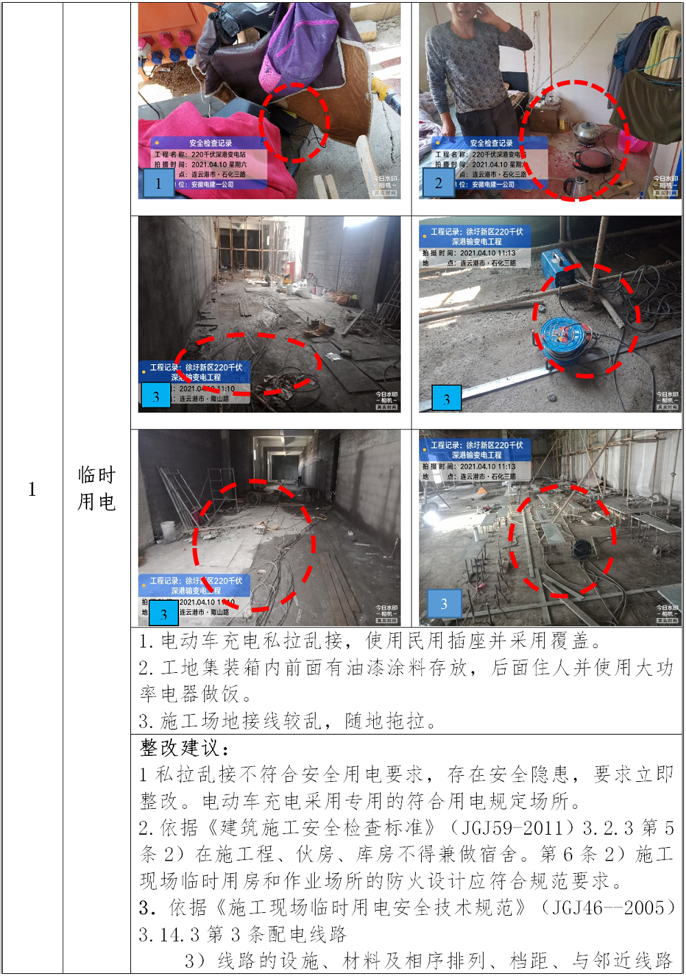 2. 徐圩新区220千伏深港输变电工程:临时用电、易爆物品存放、临边防护。