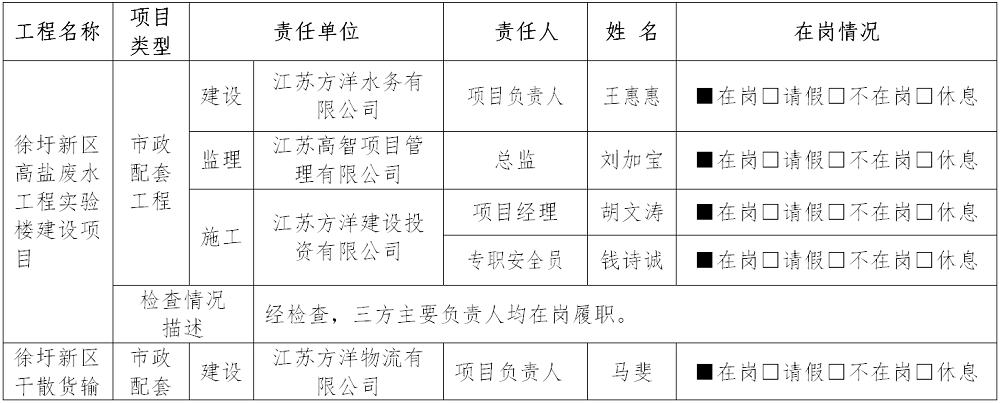 一、三方安全责任主体主要管理人员在岗情况
