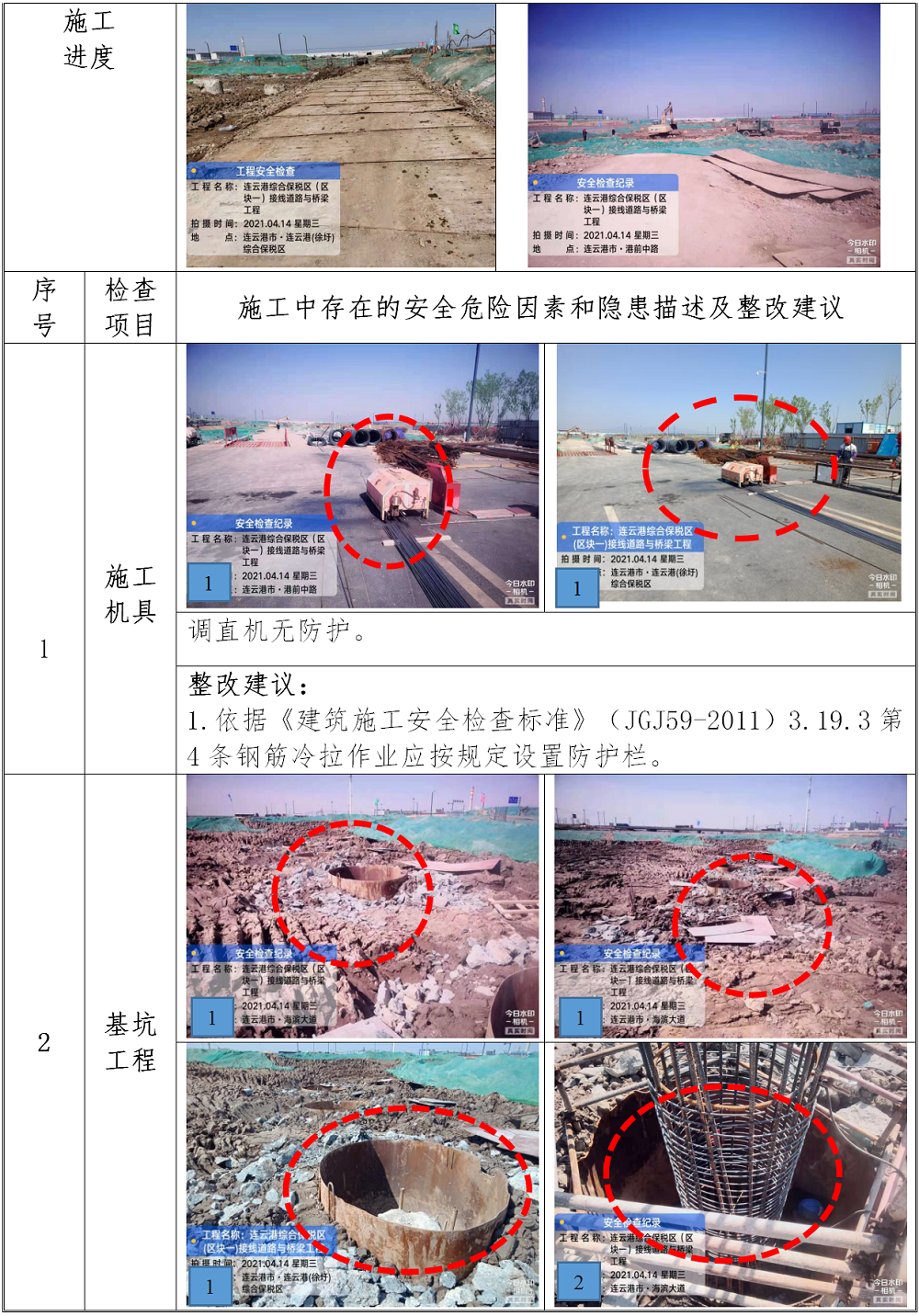 2021年4月14日,中国船级社质量认证公司万象城(中国)安全监管项目组依据万象城官方网站各项安全生产管理制度和《中国船级社质量认证公司江苏万象城(中国)建设工程安全监管服务项目实施方案》,分别对江苏方洋物流有限公司承建的连云港综合保税区(区块一)接线道路和桥梁工程、江苏方洋物流有限公司承建的连云港综合保税区(徐圩片区)二期3#、4#仓库及配套工程的施工现场安全生产情况进行专项隐患排查。