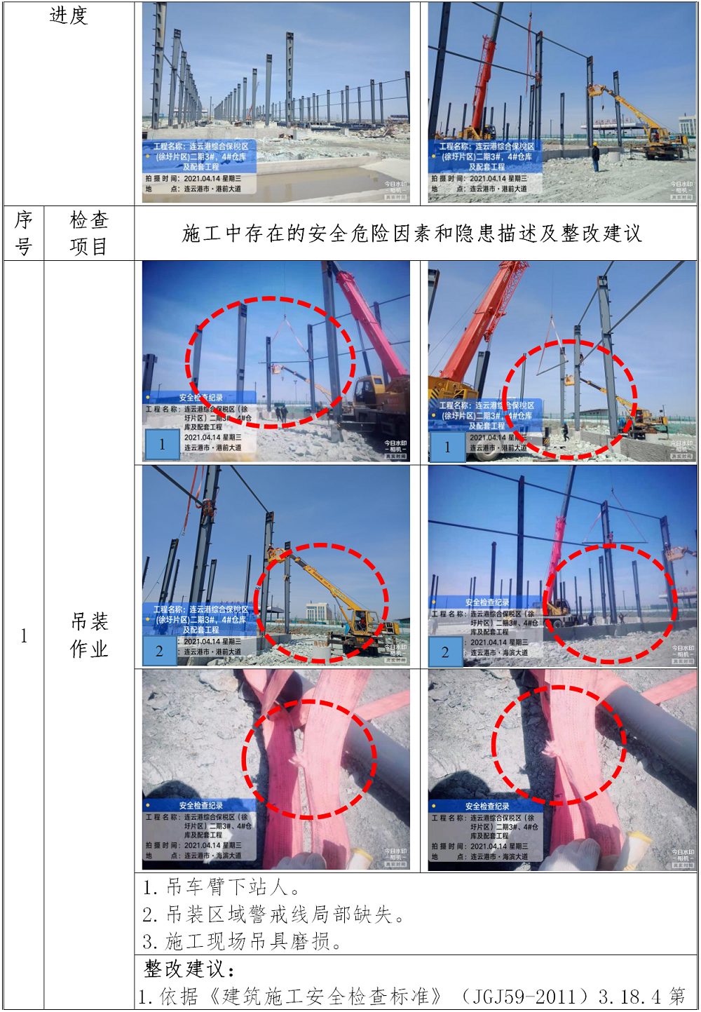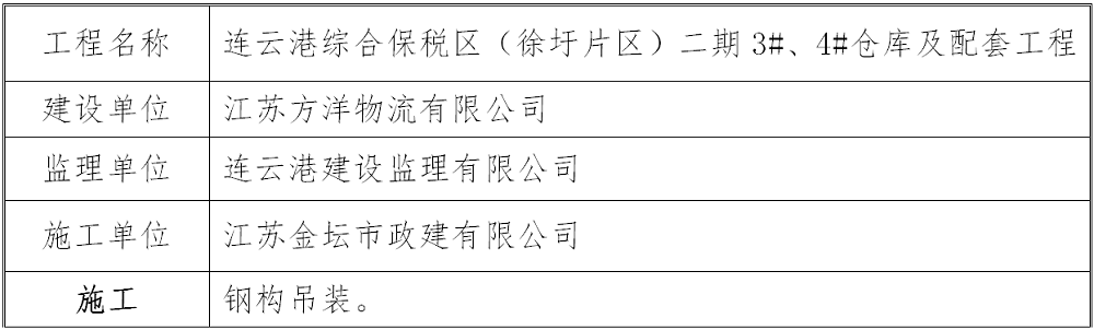 2.连云港综合保税区(徐圩片区)二期3#、4#仓库及配套工程:起重吊装、高处作业。