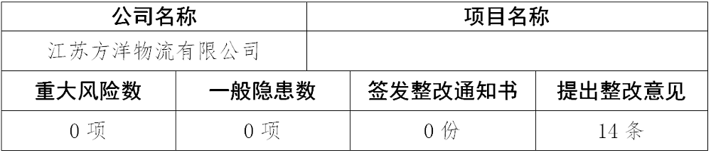 今天天下雨,根据安排对江苏方洋物流有限公司的内业进行了检查与沟通,抽查一个项目后在内业上有部分存在问题,具体检查情况如下。
