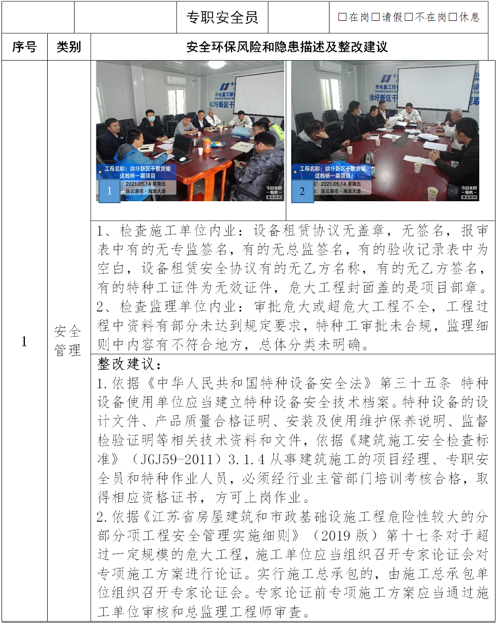 通过本次抽查与沟通交流,项目上存在资料与现场脱节,危大工程与超危大工程未按照方案施工,有的危大及超危大工程方案及相关资料缺失,建议施工单位及监理单位严格按相关标准进行内业整理,坚守先有方案后施工的原则,尤其是危大与超危大工程严格按《危险性较大的分部分项工程安全管理规定》住房和城乡建设部令第37号执行。