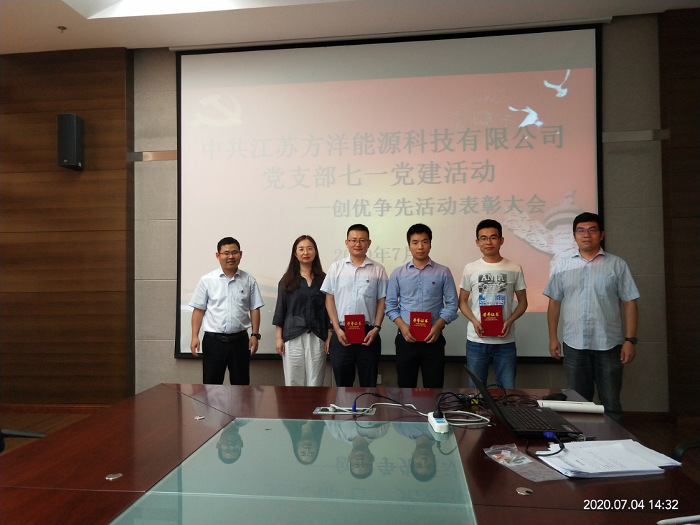 7月4日,能源科技、东港能源公司在壹品国际305会议室举行庆祝建党99周“创先争优”活动表彰大会,党支部全体党员、发展对象及入党积极分子参加了本次会议,会议由党支部书记陈海萍主持。