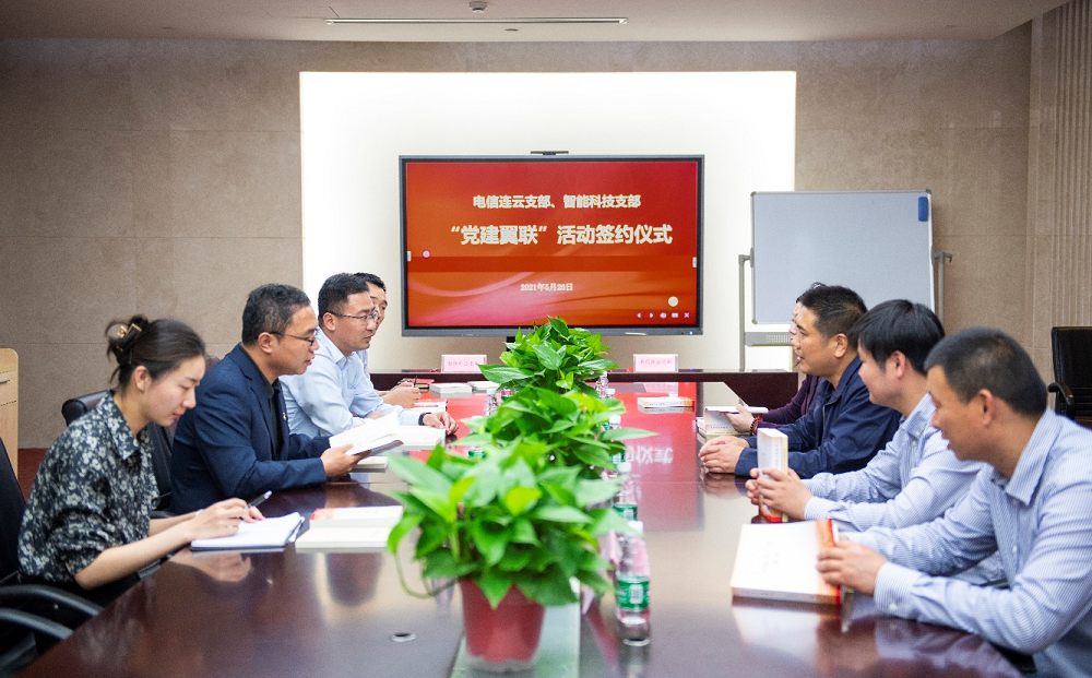 为充分发挥基层党支部主体作用,立足各自实际和特点,有效整合双方资源优势,激发党员活力,5月26日下午,智能科技党支部与中国电信连云党支部在创投服务中心举行党建共建签约仪式。中国电信连云区局局长徐继明,智能科技公司副总经理杨义海、刘冬出席签约仪式。