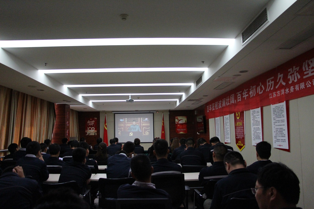 此外,为进一步激发公司员工的爱国爱党热情,加深对中国共产党百年历史与内涵的了解,水务公司组织全体党员、团员、部分群众约170人观看了影片《1921》。影片讲述了首批中国共产党人在风雨如磐中担起了救国重任,让中国革命前途焕然一新的故事。