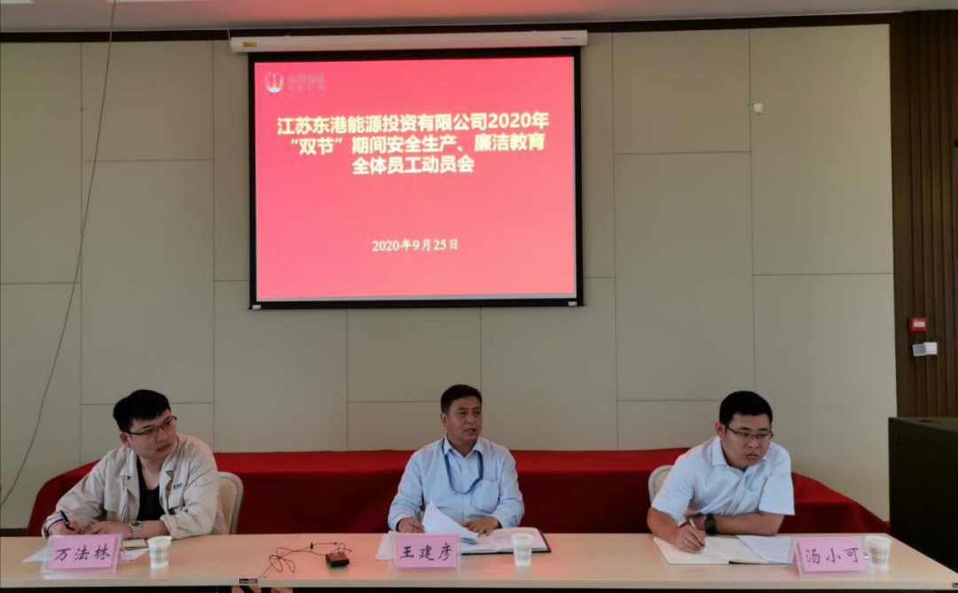 中秋、国庆佳节将至,为严格贯彻落实中央八项规定,有效防范各类生产安全事故,9月25日上午,东港能源公司在5楼多媒体会议室召开全体员工大会,就双节期间廉洁作风建设及安全生产工作进行了专题部署。