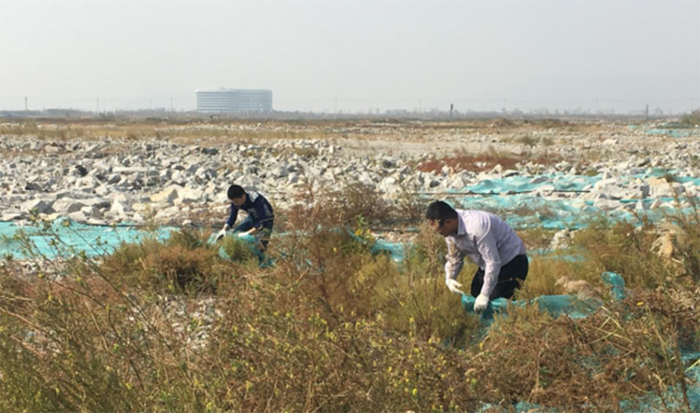 在活动中,志愿者们主动放弃中午休息时间,合理分工,不畏艰辛,展开“地毯式”处理防尘网行动,经过一个中午的清扫劳动,项目周边大部分防尘网被清理干净,环境变得整洁而有序。