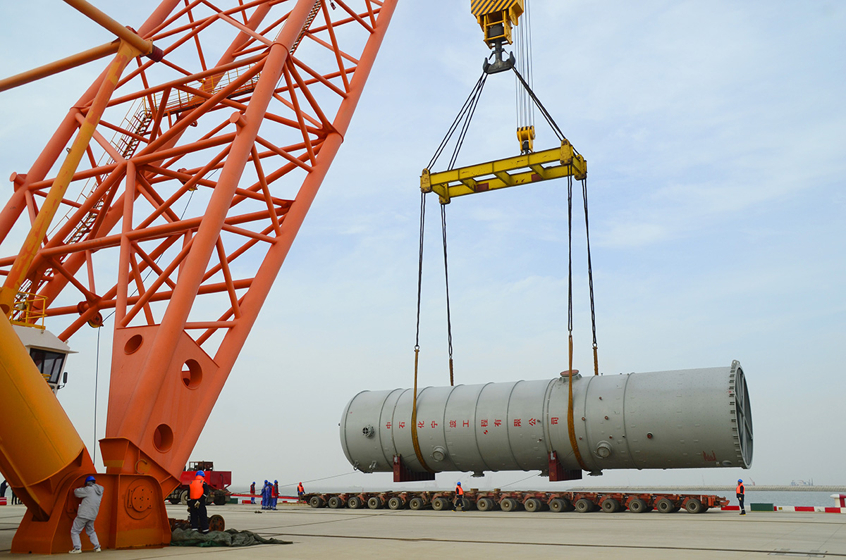 据了解,此次进行卫星石化设备吊装作业的二港池一期129泊位为5万吨级多用途码头(水工结构按靠泊10万吨级集装箱船舶设计),具有重大件运输和普通件杂货装卸功能。码头岸线长度290米,码头平台宽度60米,设计吞吐量162万吨/年,主要货种为机械设备、镍合金、棉花、杂货、集装箱标准箱等。自2014年开工以来,在示范区管委会和万象城(中国)的坚强领导下,在有关单位和部门的关心支持下,港投公司全体人员凝心聚力,攻坚克难,奋力拼搏,顺利完成了项目建设及运营的前期准备工作,于2019年8月9日成功取得试运营生产许可证。该泊位的建成运营,标志着徐圩港投公司的发展迈上新台阶,更为服务腹地经济和新区临港产业发展,推进港产融合、港产联动画上了浓墨重彩的一笔。