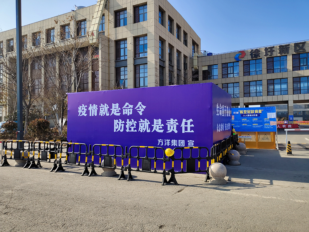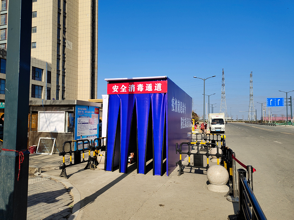 2月11日,在方洋建投和云帆物业的共同努力下,不到3天的时间,一条消毒专用通道就在工业邻里中心的主入口设置完毕并投入。
