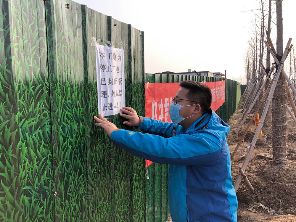 项目运营部张凯歌在工地多处张贴封闭管理公告