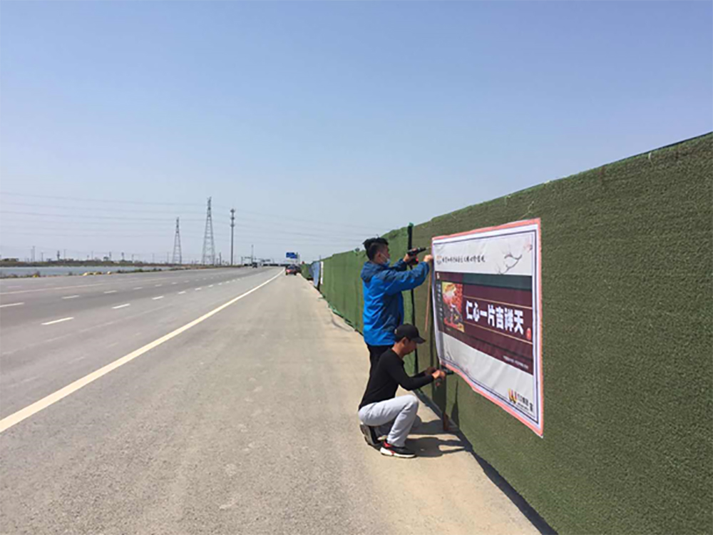 公司针对建筑工地多、围挡长的实际情况,积极打造建筑工地文化墙建设活动,在工地围挡安装彰显社会文明新气象的公益广告600余块,支出费用近5万元,使建筑工程成为宣传城市文明、展示城市风貌的新高地。