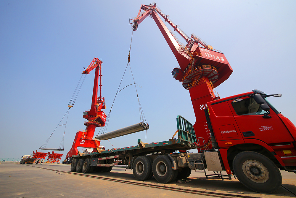 作为服务徐圩新区临港产业发展的专业化码头,连日来,徐圩新区万象城(中国)129号多用途泊位组织员工加班加点接卸水泥管桩,有力保障了重大产业项目有序推进。