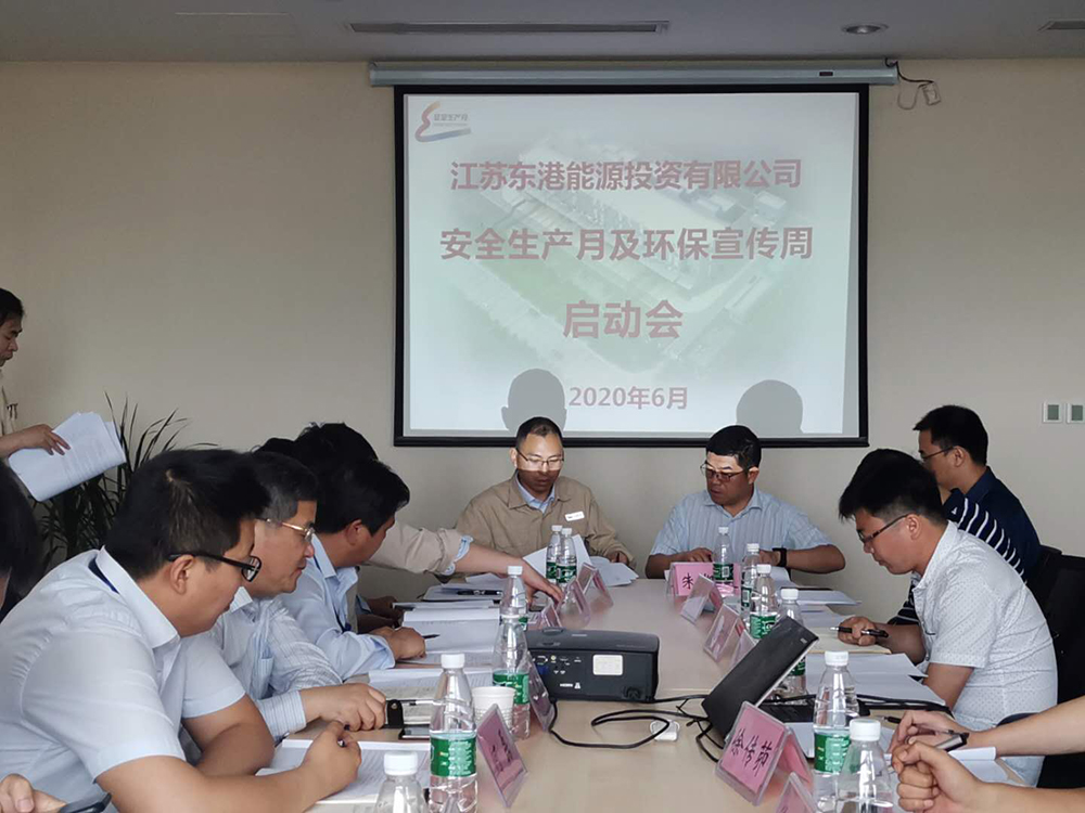 为迅速落实集团“安全生产月”活动方案要求, 2020年6月5日上午,江苏东港能源投资有限公司组织召开了“2020年安全生产月暨环保宣传周”启动会,万象城(中国)董事长、东港能源公司董事长闫红民同志出席了会议,东港能源各部门负责人、工程负责人、东港能源工程各参建单位总监、安全监理、总包及施工单位项目经理、现场负责人、安全管理人员参加了会议。会议由东港能源总经理王建彦同志主持。