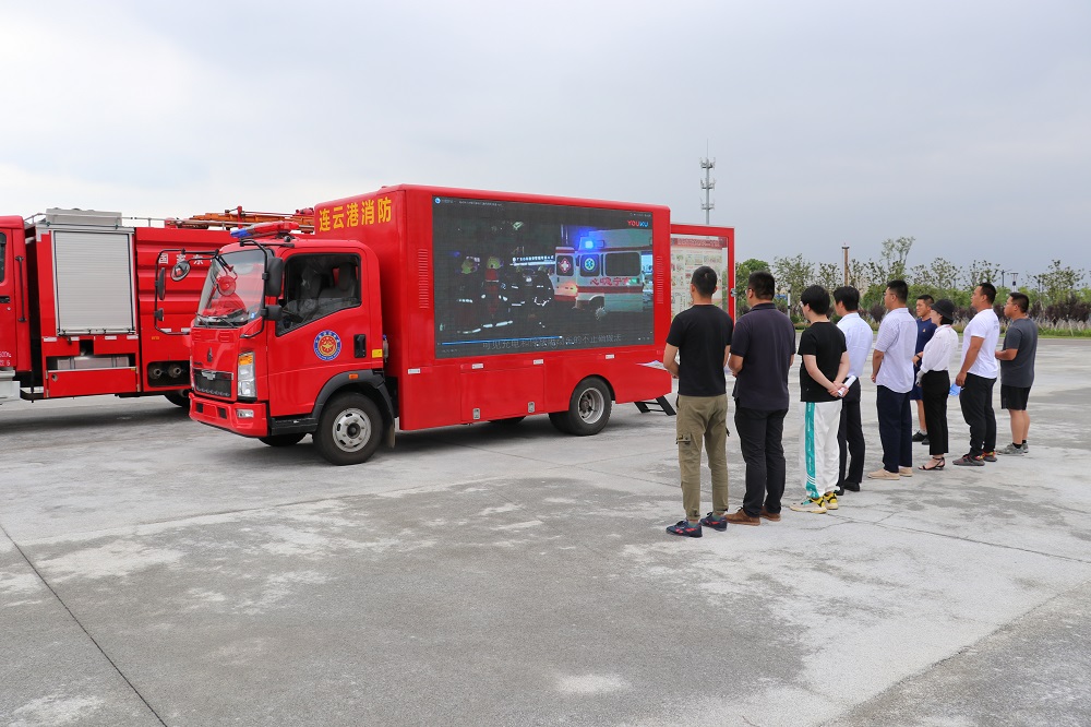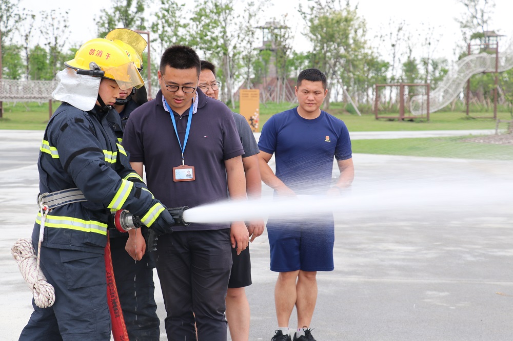 由徐圩新区消防大队的消防员为方洋人力公司全体员工讲授了各类消防知识、干粉灭火器使用方法、逃生绳结系法,并现场出动一条干线,演示了消防水枪使用方法。人力公司全体员工现场进行了消防视频学习,并用干粉灭火器进行了灭火演练。结合徐圩新区拓展训练中心安全教育体验馆项目,本次消防演习还加入了烟雾逃生环节。