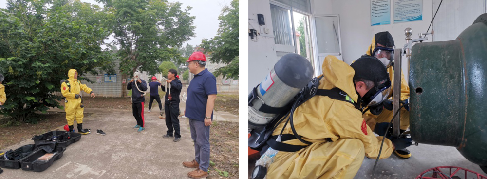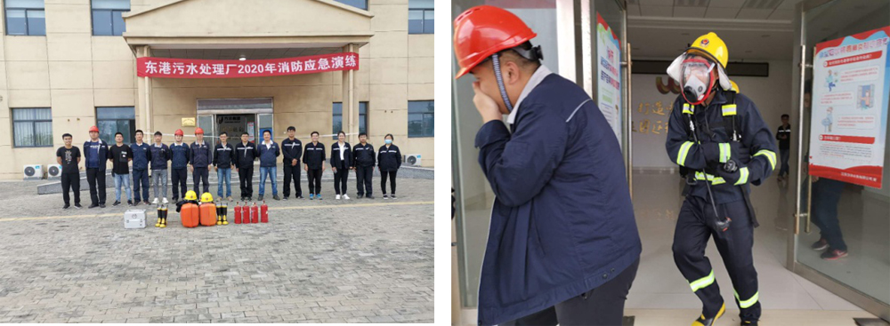 四是实地演练,防范未然。在安全月活动期间,根据公司年度应急救援演练计划,开展东港污水处理厂消防应急演练和东辛水厂漏氯应急救援演练活动。