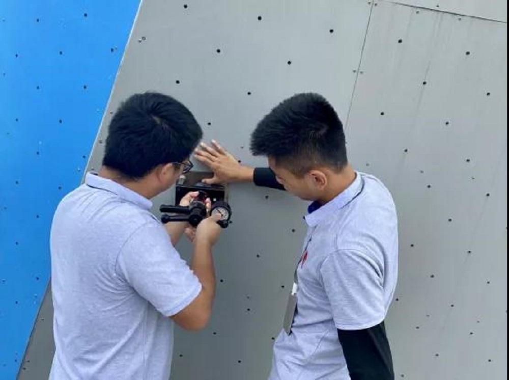 江苏方洋人力资源管理有限公司总经理苏国强同志详细介绍了攀岩项目具体情况,联合检查小组通过查阅相关档案、实地查看等方式,对项目周边环境、资质材料、设备设施和从业人员资质、卫生管理和公共安全等方面进行了全面细致的检查和督导,现场由第三方机构对设备承重及拉力情况进行了检测。