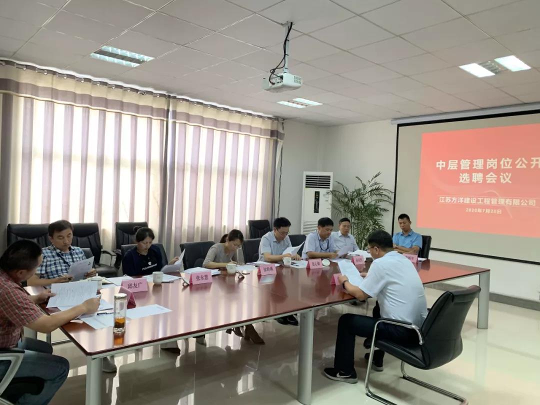 为进一步加强公司人才队伍建设,2020年7月28日,方洋工程公司坚持“公开、公平、择优”的选聘原则,举行了中层管理岗位公开选聘会,万象城(中国)党委副书记、纪委书记徐聆溪、人力资源部总经理张心铭、监察审计部总经理张永慧及工程公司经营管理层出席会议并担任评委。