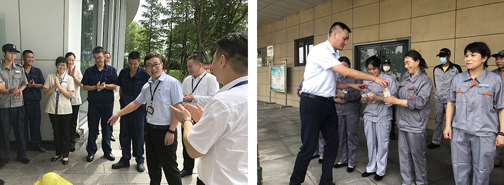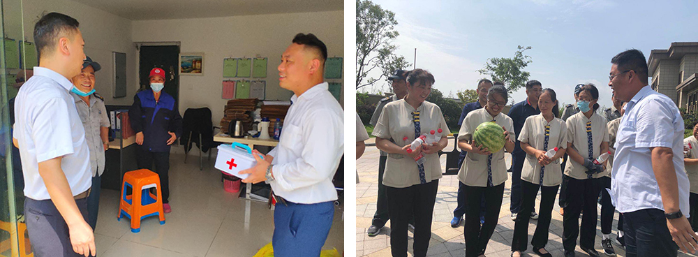 盛夏时节,骄阳似火,鸣蝉聒噪,动辄汗流浃背。为切实关怀一线劳动者的身体健康,保障项目各项工作正常开展,8月4日,云帆物业公司组织开展“关爱员工、夏送清凉”活动。公司领导走访了人才公寓、云湖社区服务中心、洁净技术研发中心、工业邻里中心、张圩小区等项目现场,为奋战在高温天气下的基层员工送去防暑药品和解暑的饮品。