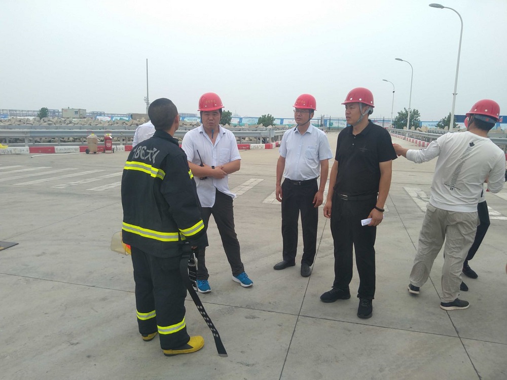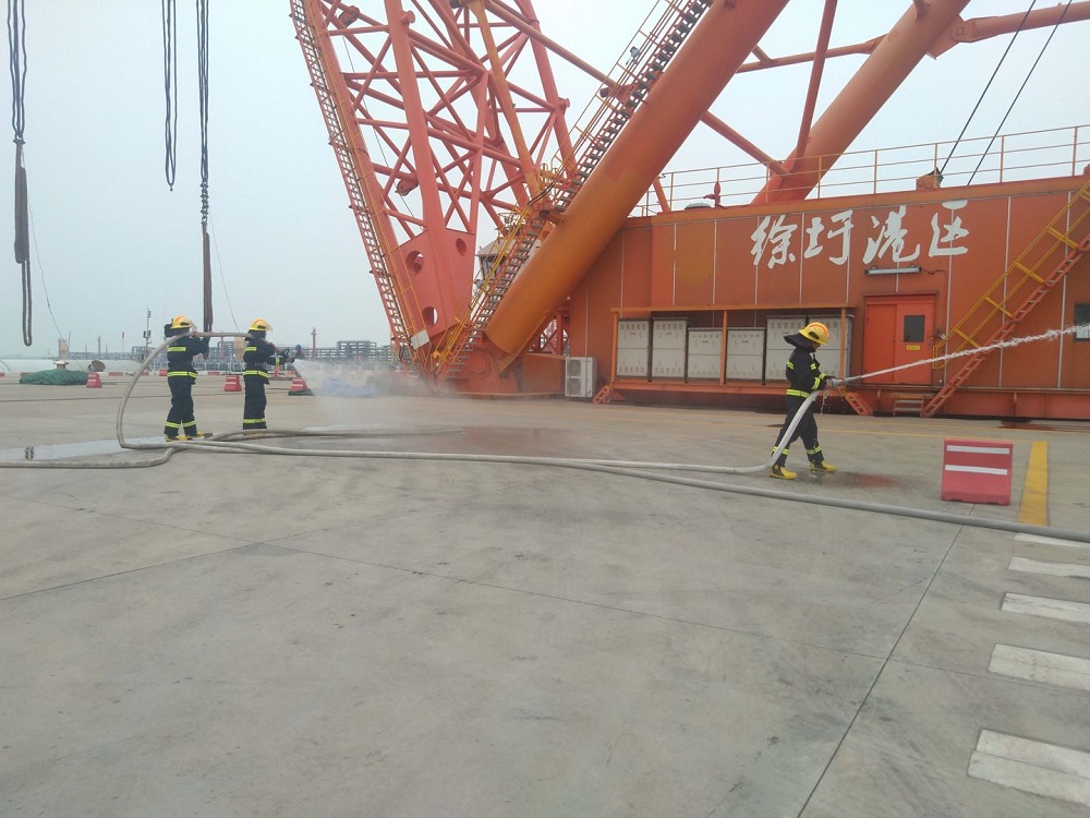 本次演练由港投公司总经理邵传庆担任总指挥,副总经理庞训宇担任副总指挥,港投公司、186大队、方洋能源科技公司等单位共30余人参加演练。演练从实战出发,以生产装卸过程中起重机设备间突然起火为事故主线,演练人员围绕报警响应、抢险救援、紧急疏散、医疗救护、现场警戒、消防扑救等环节,积极灭火,疏散人员,开展自救。整个过程中指挥得当、分工明确、动作迅速、密切配合,最终扑灭“大火”,消除了险情。