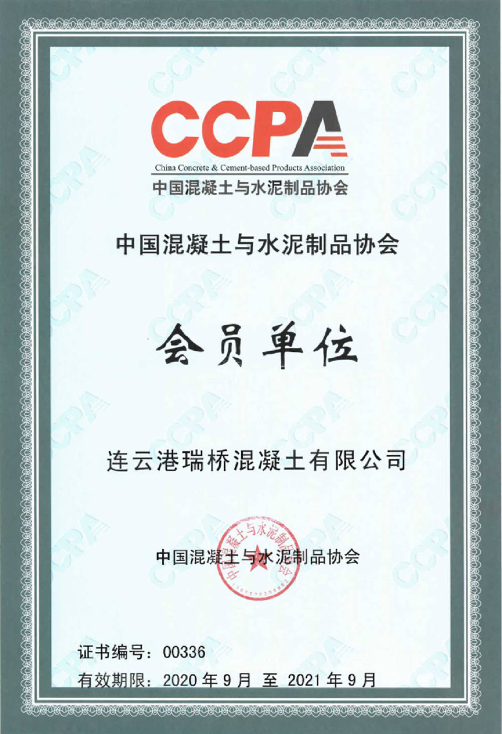 为及时掌握混凝土行业政策与动态,加强同行业之间技术交流合作,提升企业形象与知名度,经过前期一系列筹备工作,近期瑞桥公司正式加入中国混凝土与水泥制品协会,成为会员单位。