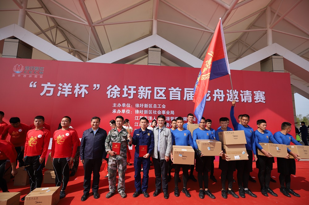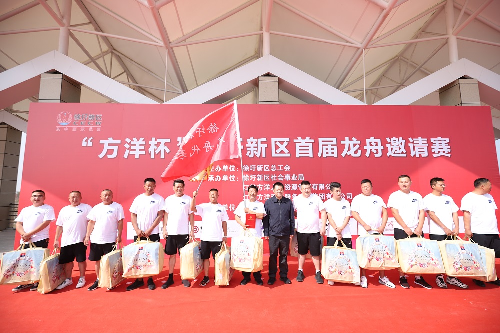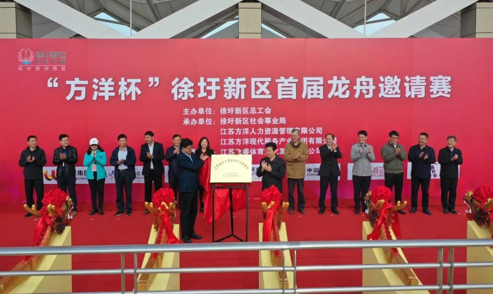 10月17日,“方洋杯”徐圩新区首届龙舟邀请赛在徐圩新区拓展训练基地圆满举办, 本次赛事由徐圩新区总工会主办,徐圩新区社会事业局、江苏方洋人力资源管理有限公司、江苏方洋现代服务产业集团有限公司承办,共有来自新区机关、驻区企业等21支代表队,约315名运动员参加比赛,比赛现场还吸引近800名观众观赛助威。开幕式上,还举行了江苏省水上项目徐圩训练基地揭牌仪式。