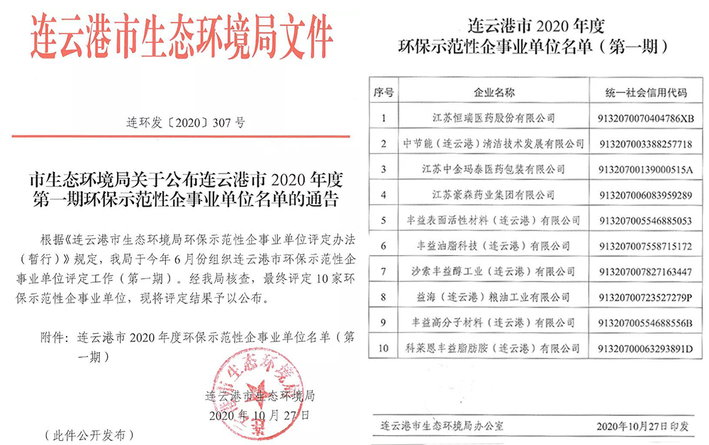 根据《连云港市生态环境局环保示范性企事业单位评定办法(暂行)》和《开展环保示范性企事业单位申报工作(2020年第一期)》等有关文件要求,中节能连云港公司通过自主申报、材料提交、审查评议等筛选流程,最终获得了连云港市“2020年度第一批环保示范性企事业单位”称号。