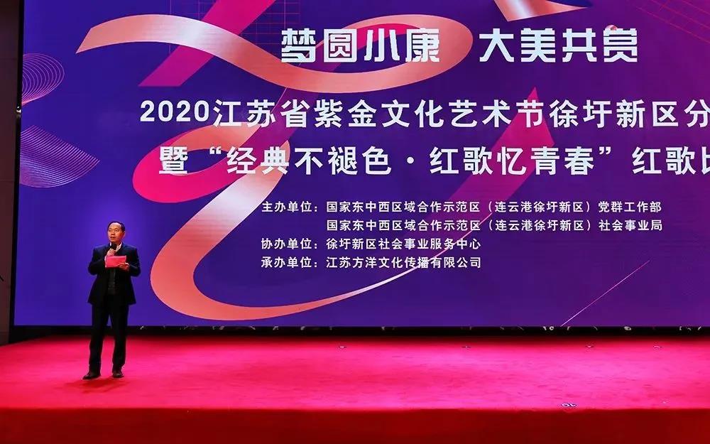 为纪念中国共产党成立99周年,进一步培养新区人民对党和国家的热爱之情,“梦圆小康 大美共赏”2020江苏省紫金文化艺术节徐圩新区分会场暨“经典不褪色·红歌忆青春”红歌比赛于11月18号下午在大陆桥会议中心宴会厅圆满举行。本次活动由国家东中西区域合作示范区(连云港徐圩新区)党群工作部和社会事业局联合主办,江苏方洋文化传播有限公司承办。徐圩新区党工委副书记、纪工委书记、总工会主席江行洲出席了本次活动。