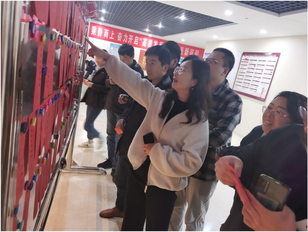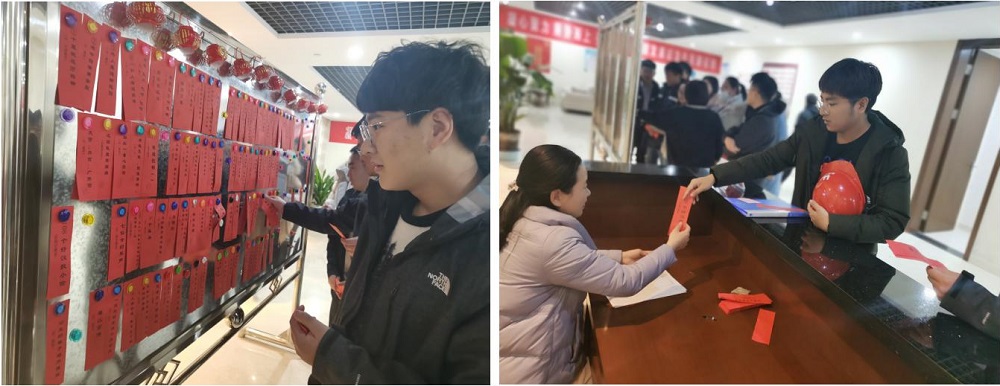 活动现场,公司员工们穿梭在谜面展板前围着谜面,有的眉头紧锁,有的激烈探讨,有的兴高采烈地揭下谜面去兑换奖品,现场气氛活跃,欢笑声不断,全体员工共同体验灯谜带来的乐趣,感受浓浓的节日氛围和集体温暖。