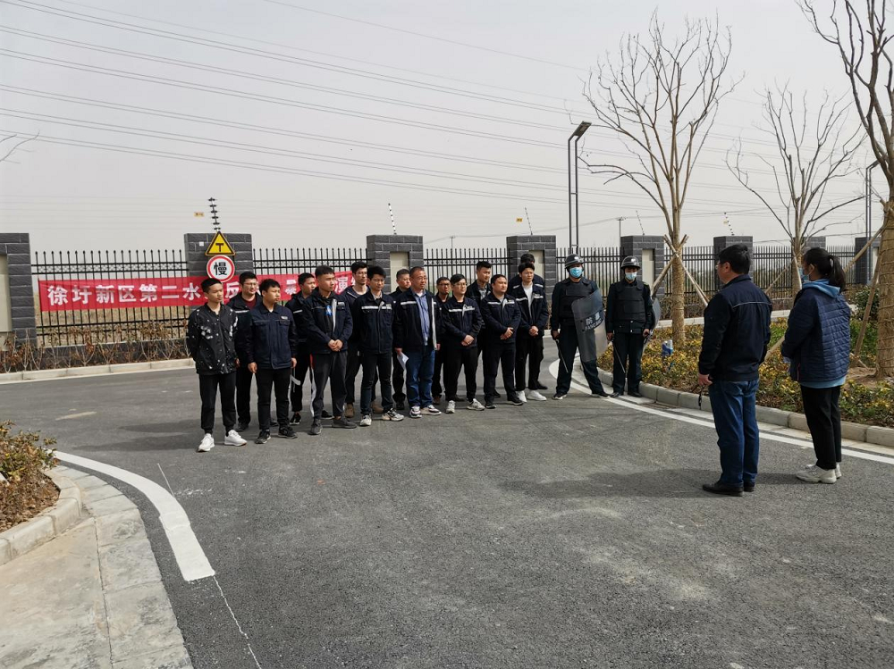 3月29日上午10点,水务公司取水泵站传来尖锐的警报声,大门立即关闭,喇叭中传来“全体人员注意,泵站发现两名不法分子企图入侵,安保人员立刻携带反恐器械前往劝阻,其余人员立即随值班人员疏散至安全集合点!”随后取水泵站人员迅速随值班人员撤离至安全集合点,经过半小时劝阻及反击,成功制服“暴徒”。