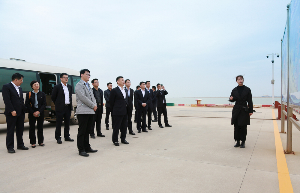 4月20日,兴业银行南京分行党委书记、行长郝超一行在徐圩新区考察调研,示范区党工委委员、管委会副主任张思远,集团总裁安涛、副总裁于富忠陪同考察。